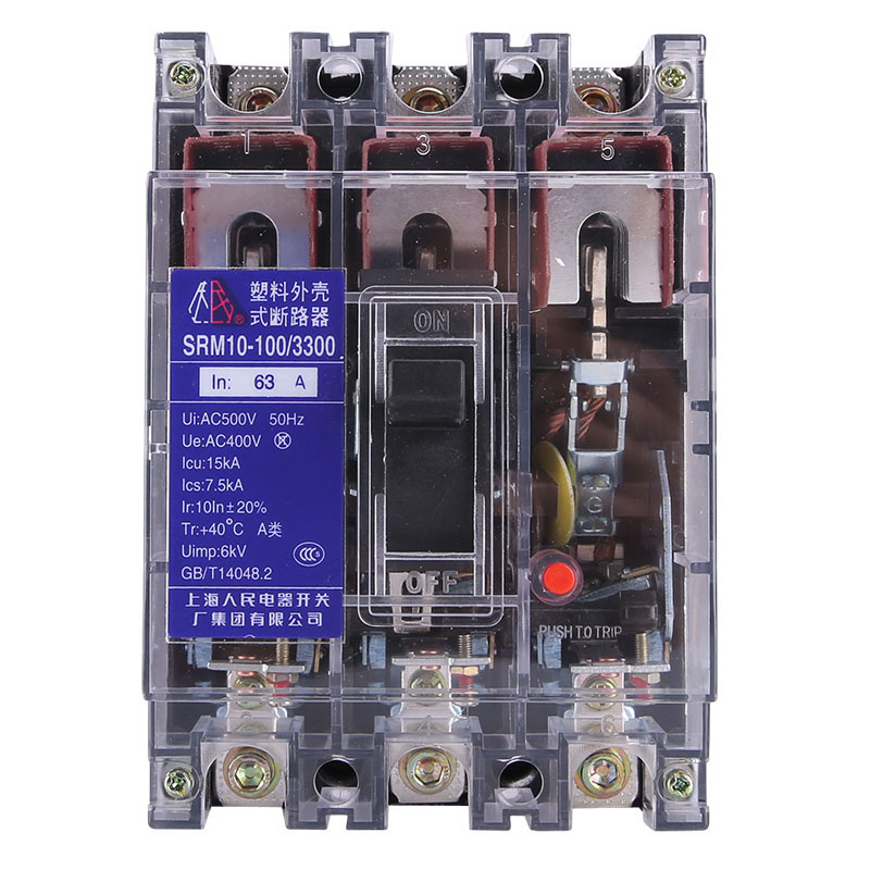 SRM10系列(透明)塑料外殼式斷路器(下簡稱斷路器),主要用于交流50Hz,額定電流從16A至630A,額定絕緣電壓至500V,額定工作電壓400V及以下的配電網(wǎng)格中用來分配電能及作為線路及電氣設(shè)備的過載、短路和欠電壓保護。在正常情況下,斷路器也可作為線路的不頻繁轉(zhuǎn)換之用,額定電流在400A及以下的斷路器亦可作為保戶電動機和電動機的不頻繁起動之用。本產(chǎn)品按GB140148.2及相關(guān)標(biāo)準(zhǔn)設(shè)計、制造和檢驗。